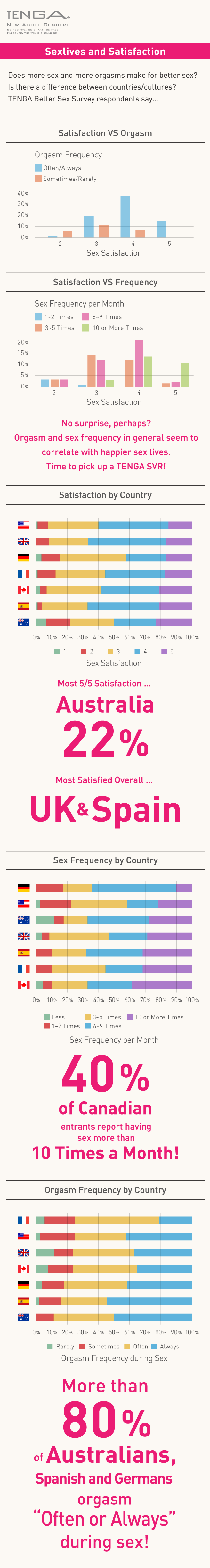 Disclaimer: The TENGA Better Sex Survey was an informal survey, all responses are anecdotal and subjective to each individual tester. The survey respondents were not a representative sample of countries included in the survey.