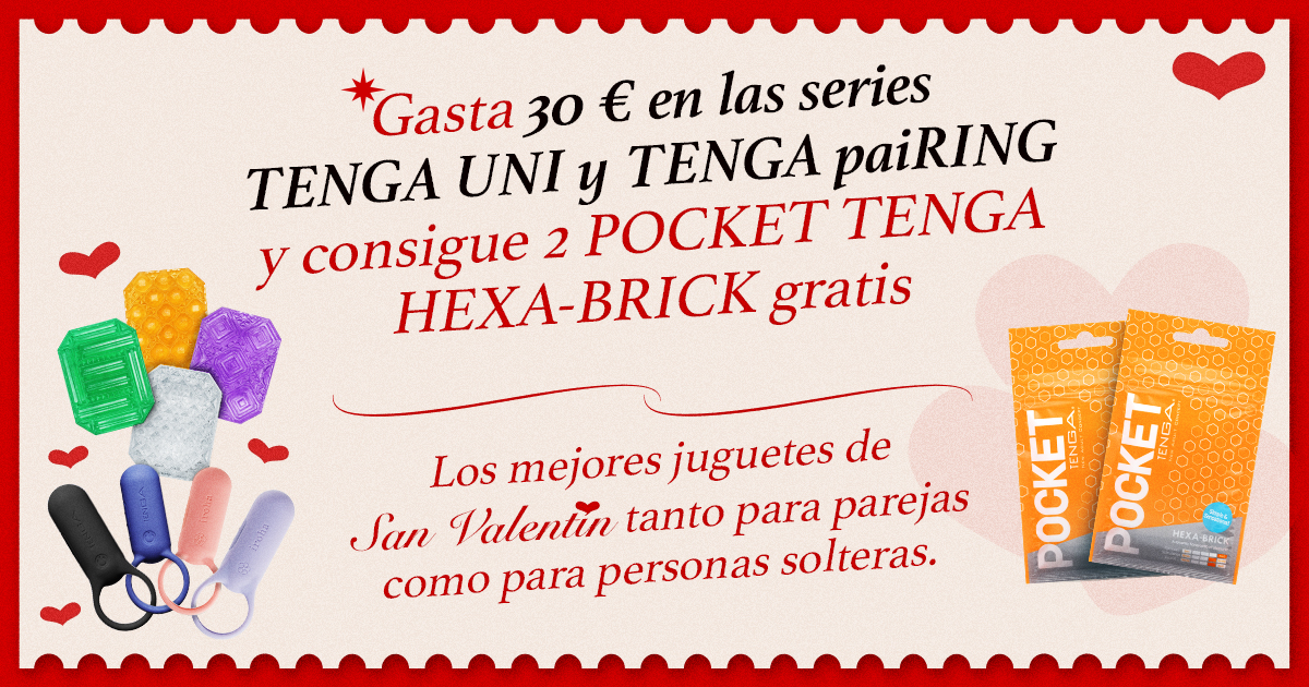 Gasta 30 € en las series TENGA UNI y la NUEVA y reluciente paiRING y consigue 2 POCKET TENGA HEXA-BRICK gratis