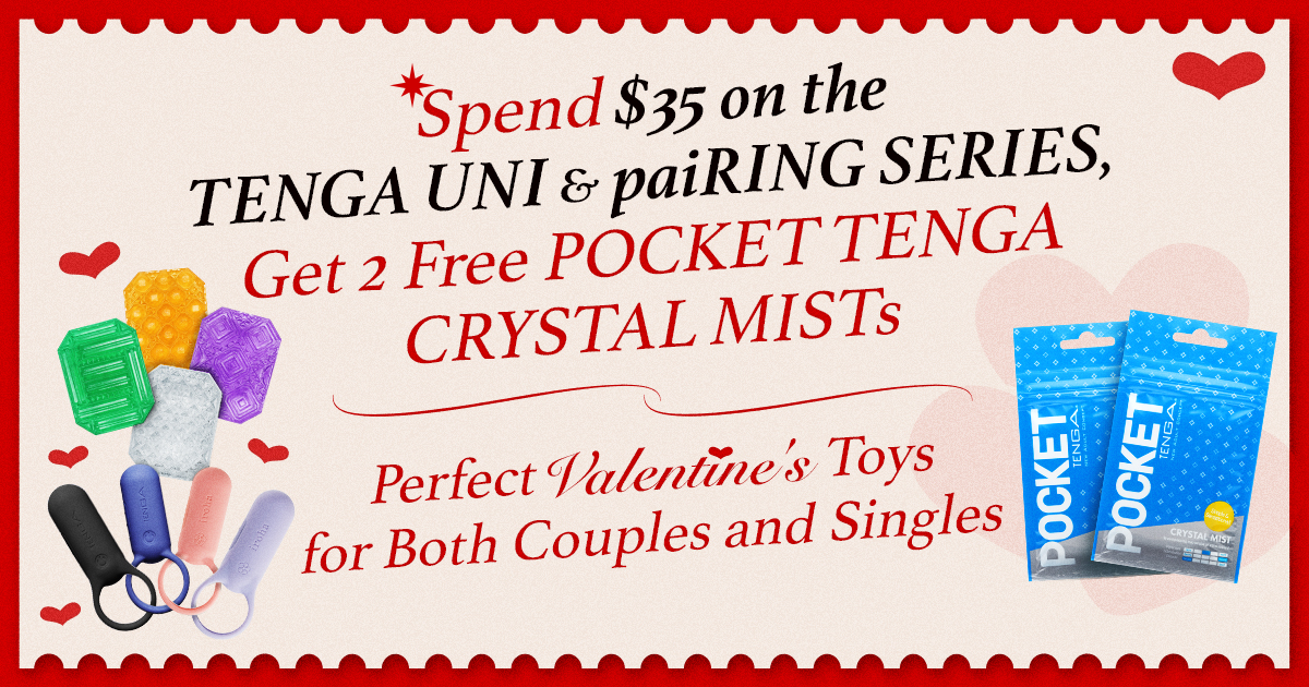 Spend $35 on the TENGA UNI & BRAND NEW paiRING Series, Get 2 Free POCKET TENGA CRYSTAL MISTs