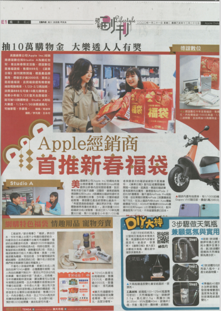 蘋果紙本副刊刊載了TENGA的消息